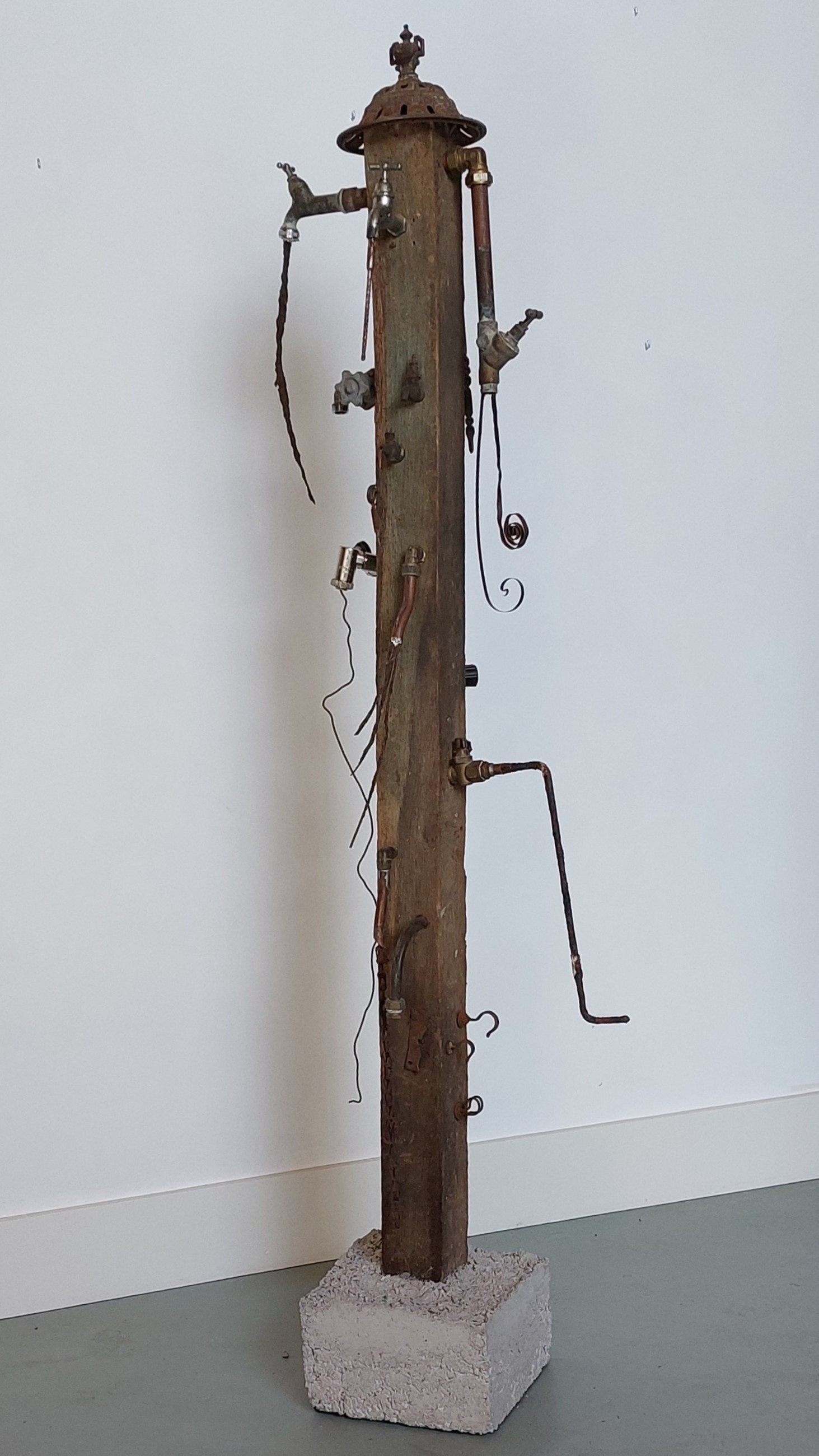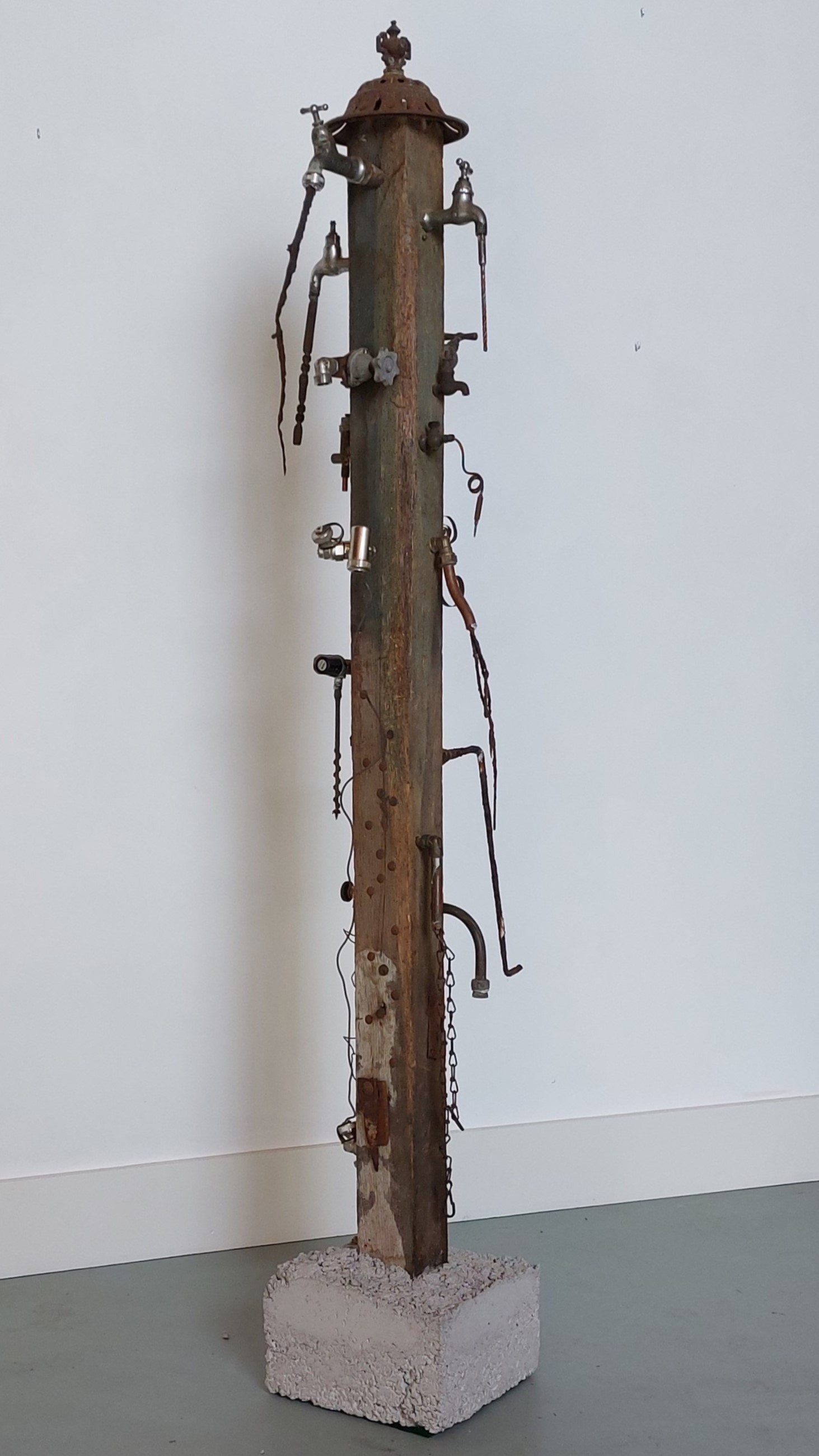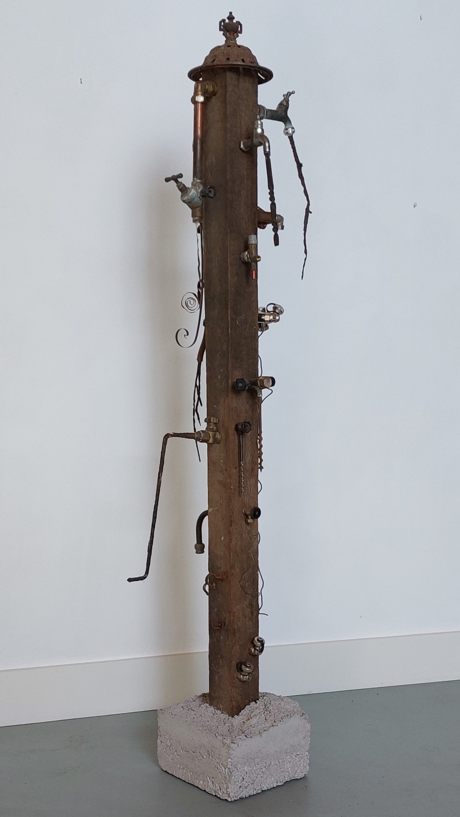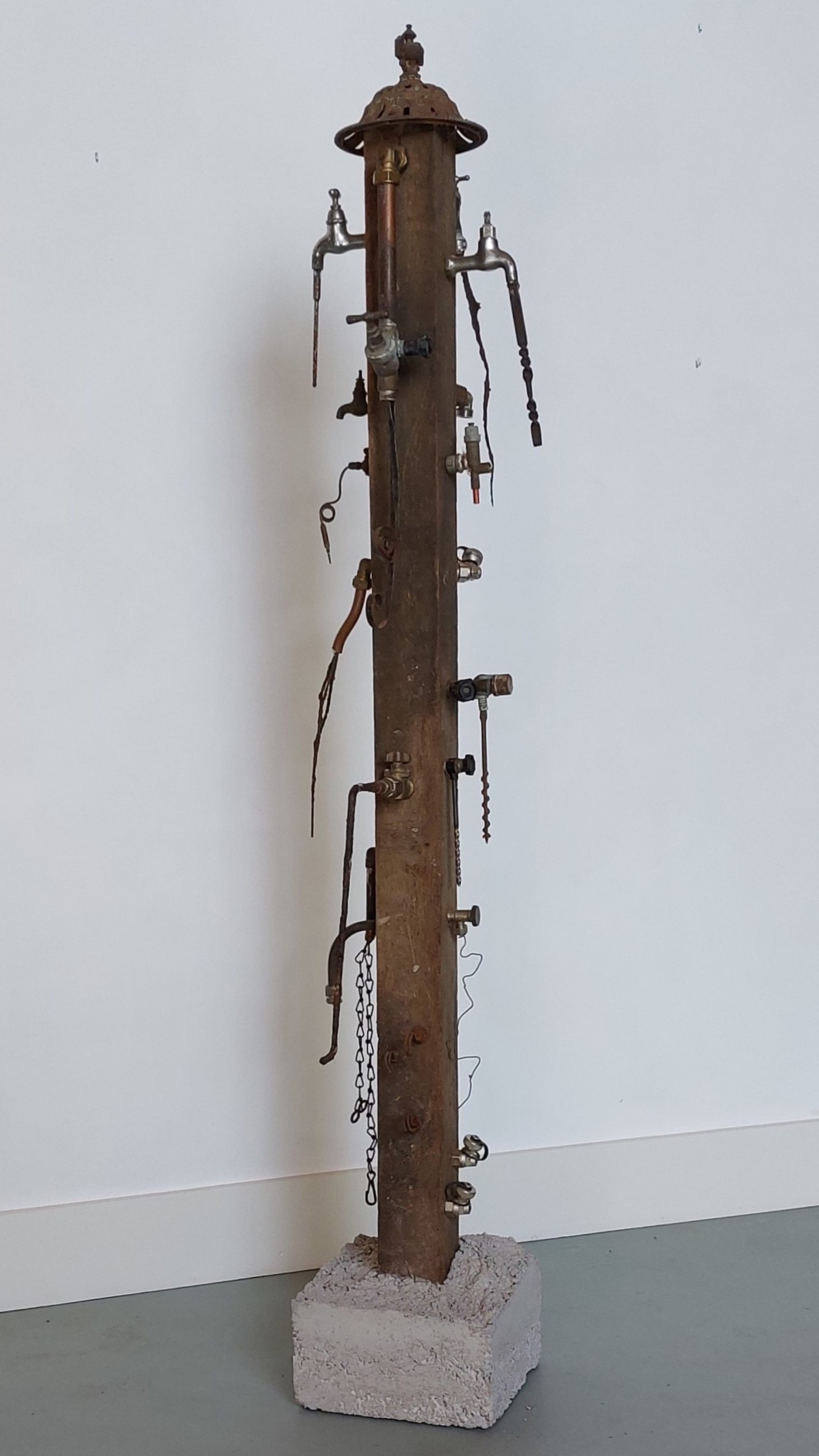 Materialen: verroeste onderdelen machines, spijkers etc.